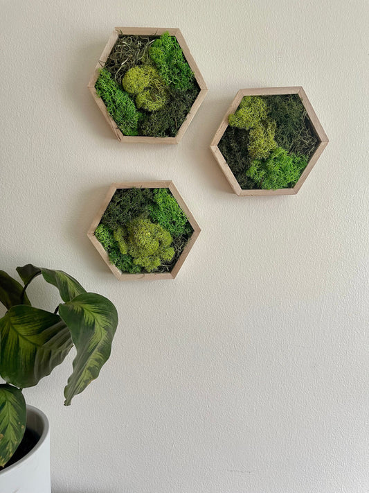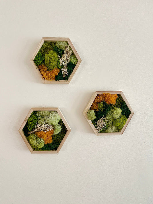 Preserved Reindeer Moss Wall Art: Wood Hexagon Set | USA - TARIFF FREE
