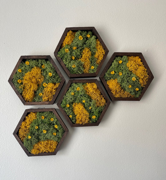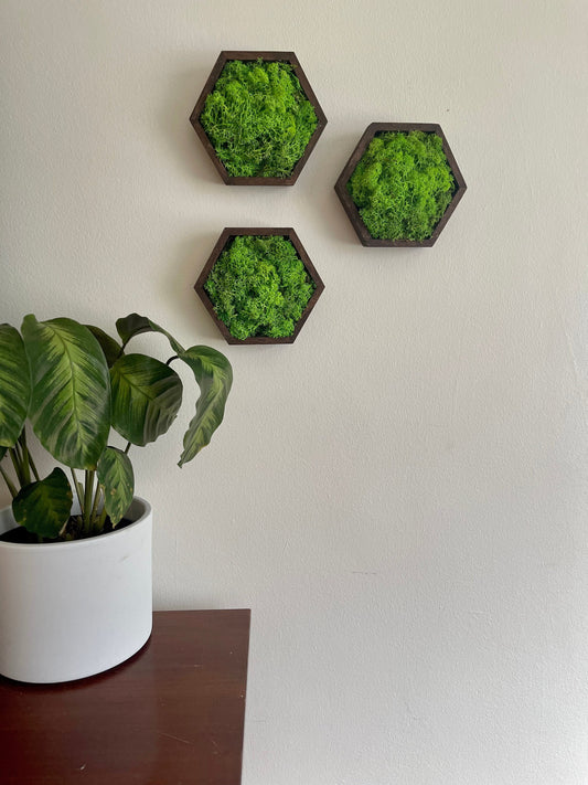 Honeycomb Reindeer Moss Wall Art: Wood Hexagon Set | USA - TARIFF FREE