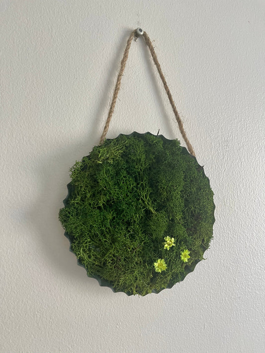 Moss Wall Art | Home Deco | Round Metal Moss Frame | Green with Preserved Flowers