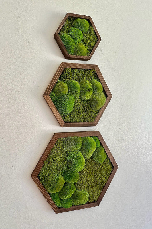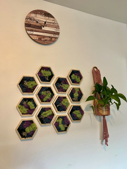 Honeycomb Moss Wall Art: Wood Hexagon, Preserved Reindeer Moss | USA - TARIFF FREE