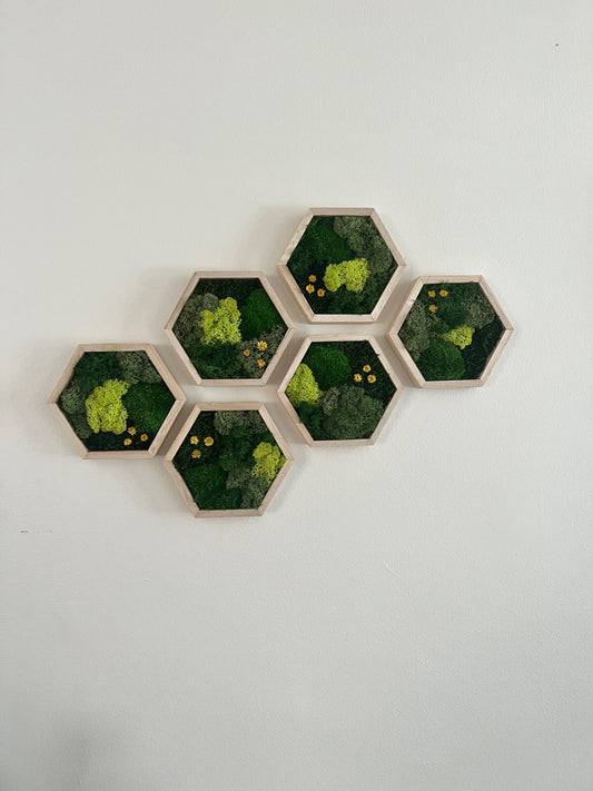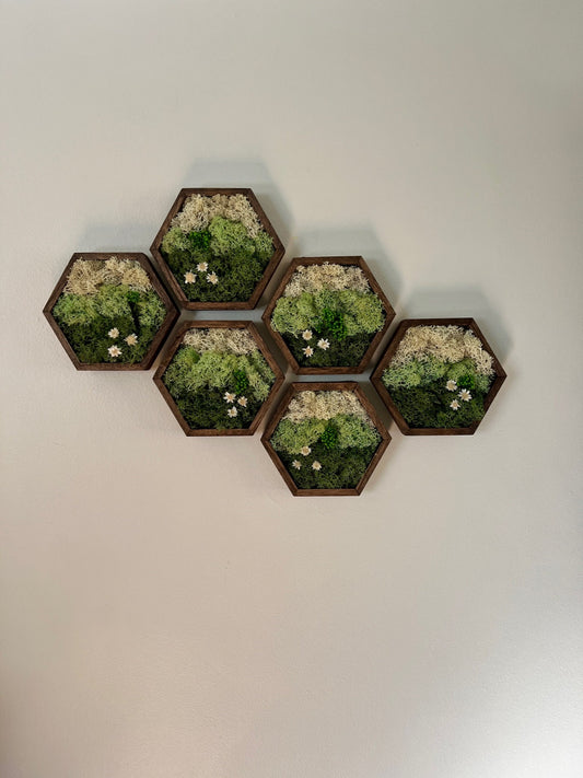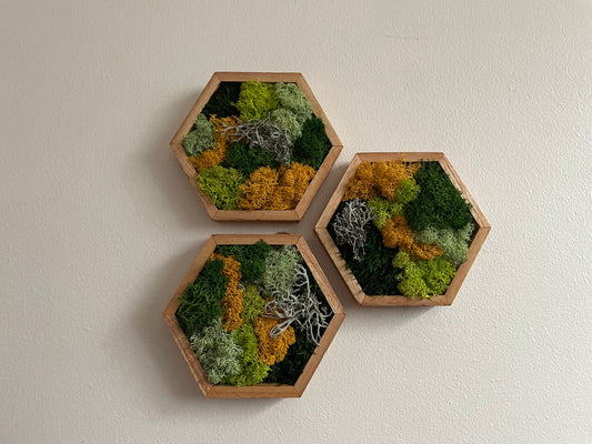Honeycomb Moss Wall Art: Reindeer Moss in Wood Hexagon | USA - TARIFF FREE