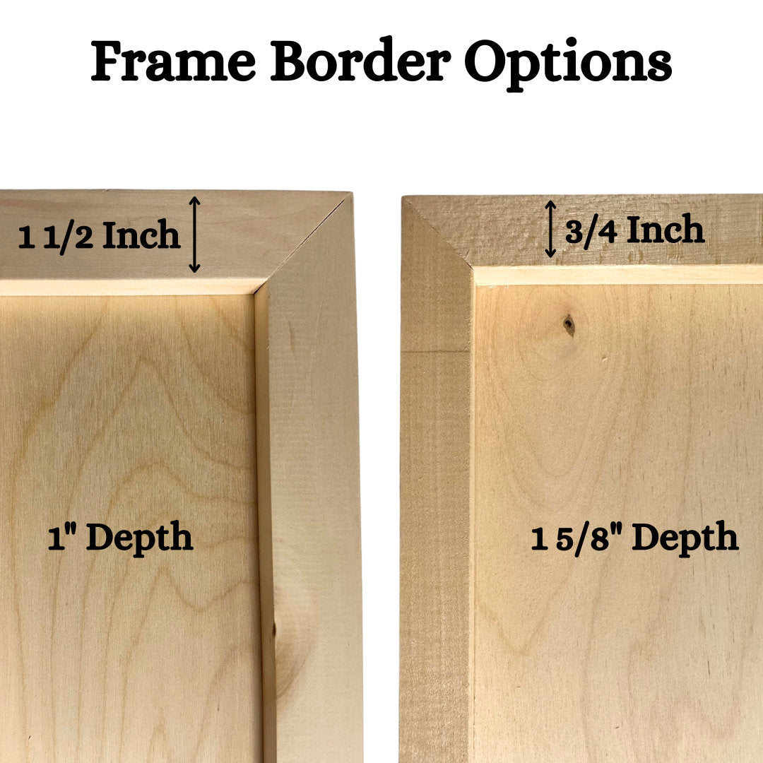 **Please note dimensions and measurements carefully, both frames are 24 by 8 inches but depth from the wall and trim size varies between options**