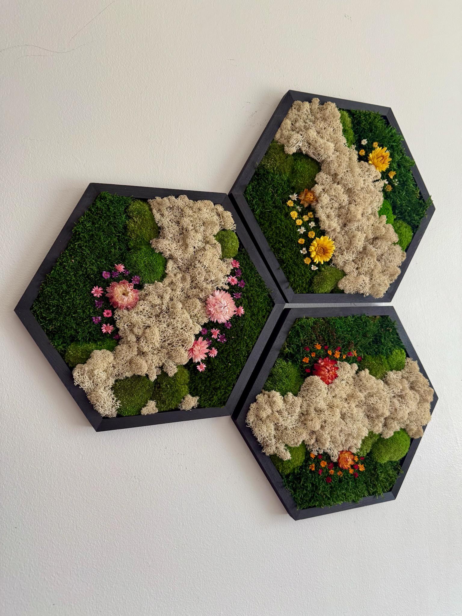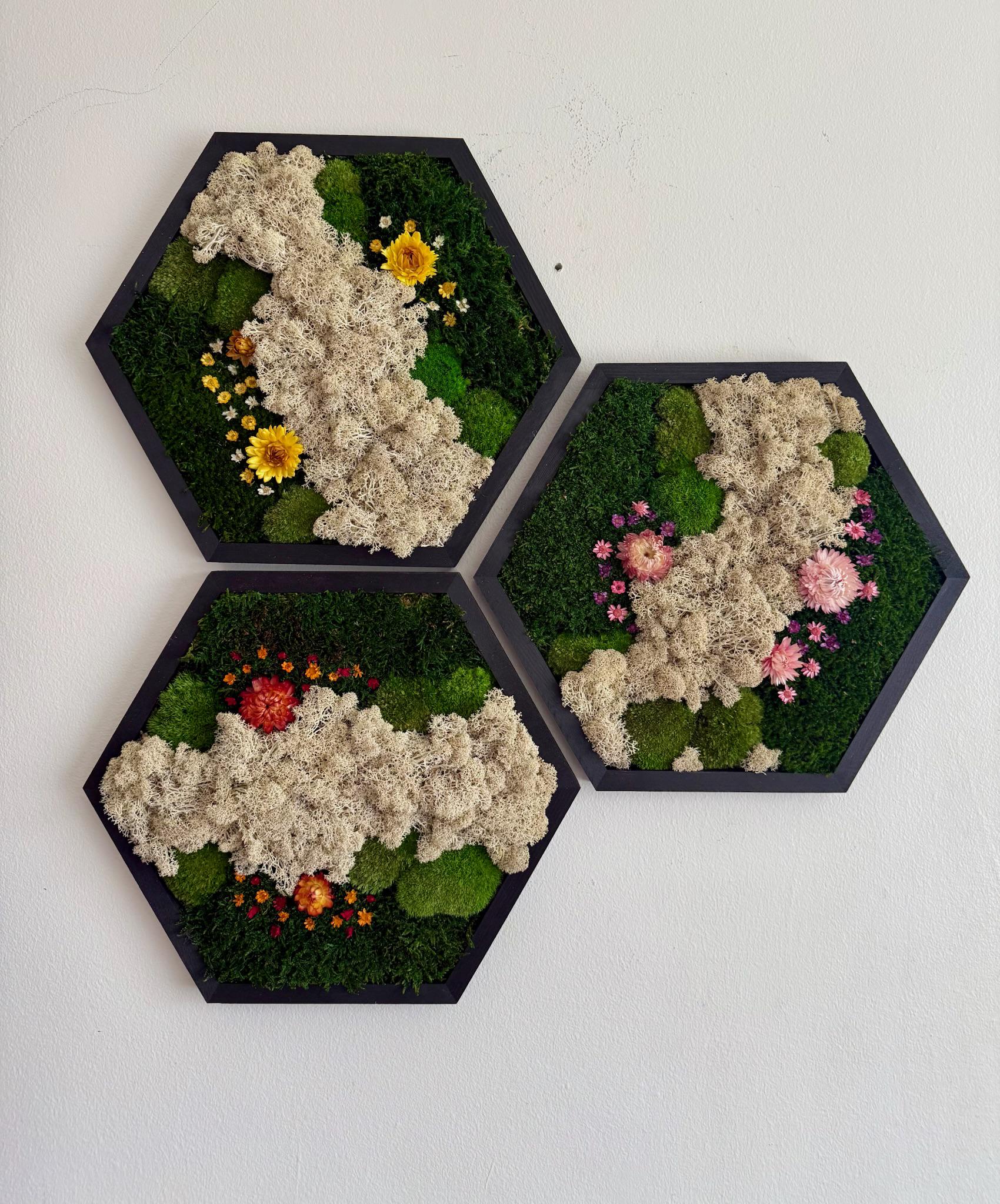 Handmade Moss Wall Art: Reindeer Moss Hexagon - Natural Home Decor | USA - TARIFF FREE