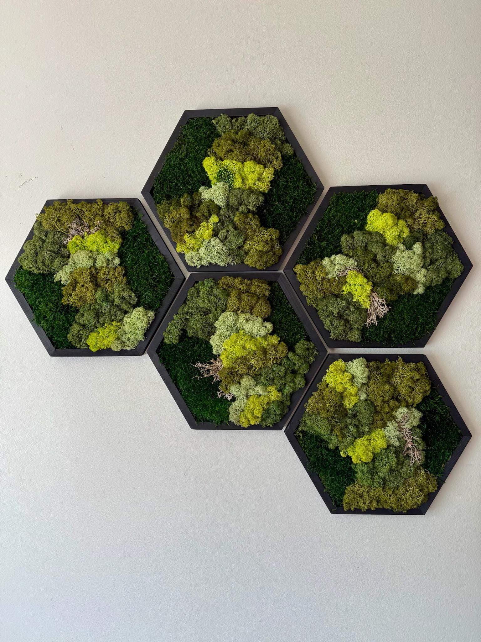 Handmade Reindeer Moss Wall Art: Hexagon Wood Frame Set | USA - TARIFF FREE