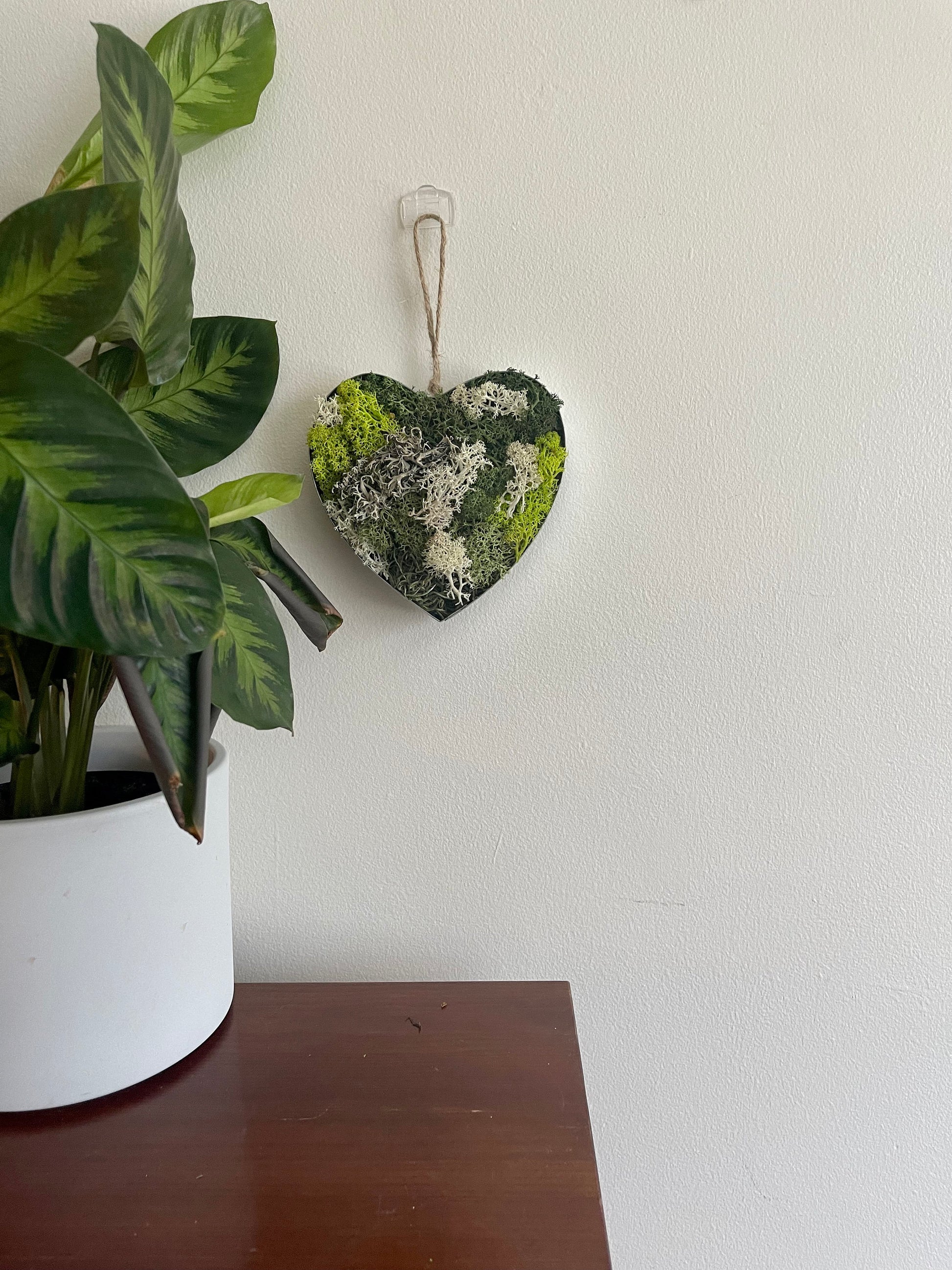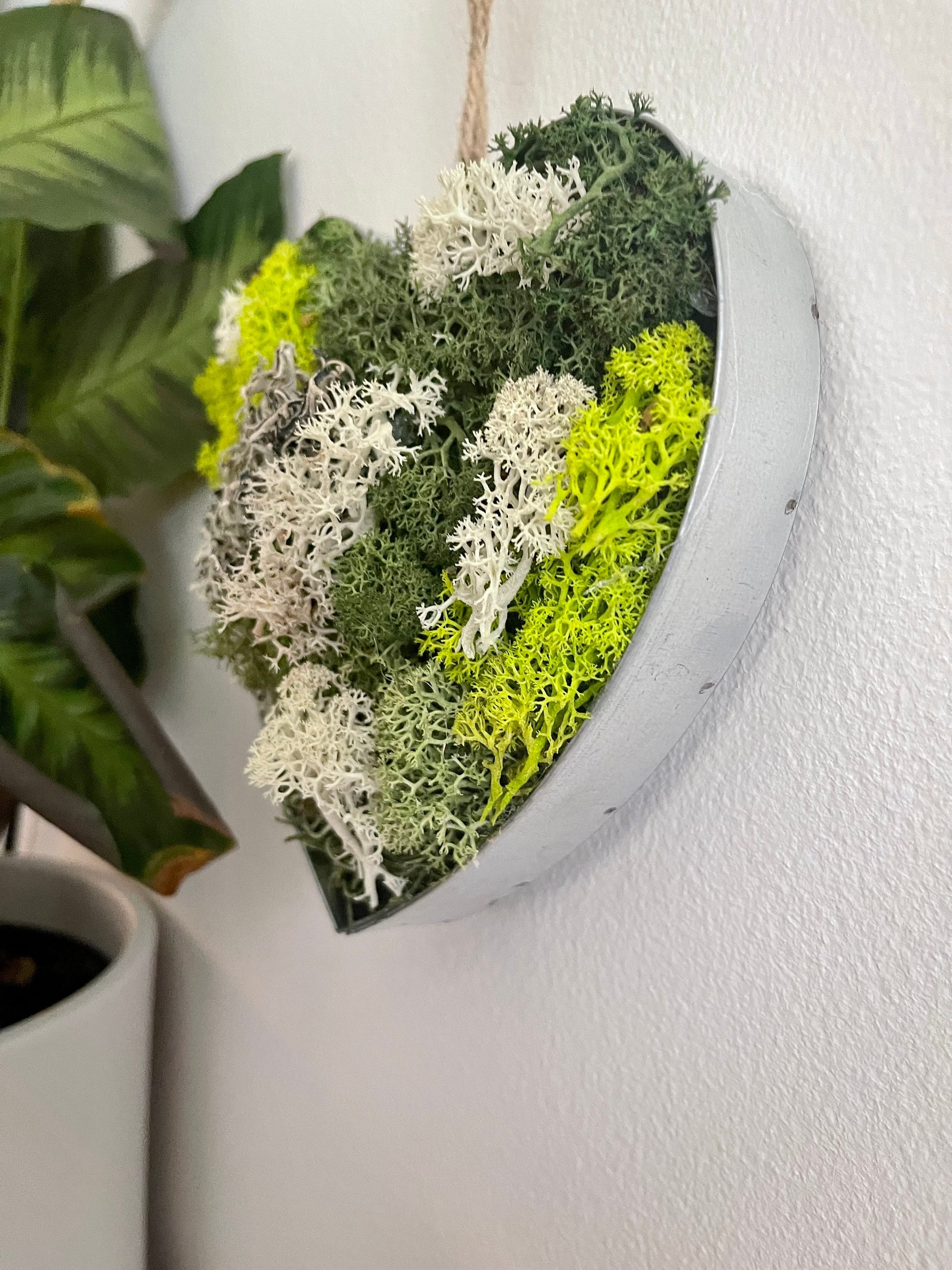 Bring a piece of nature into your home with this preserved reindeer moss heart.
