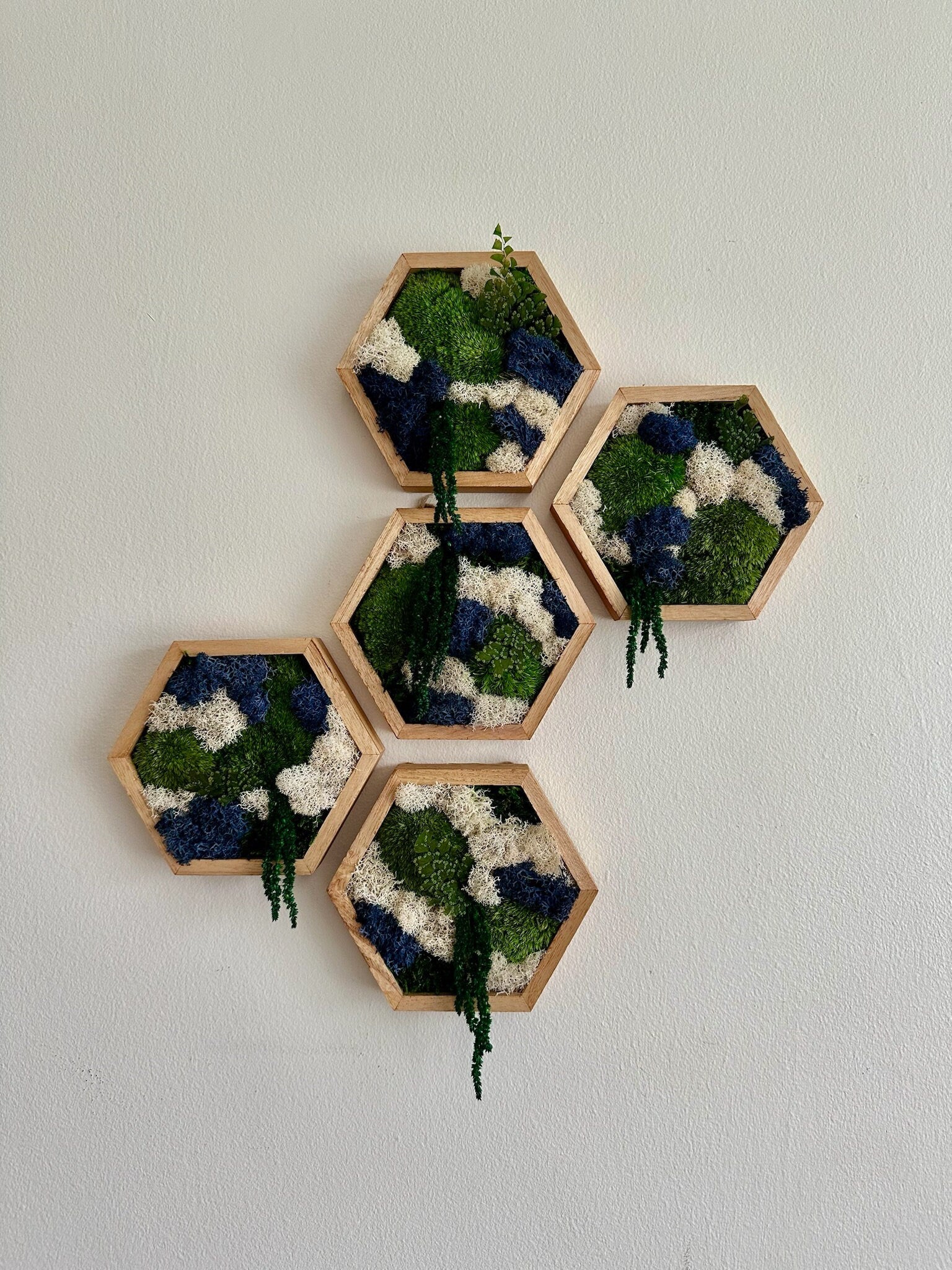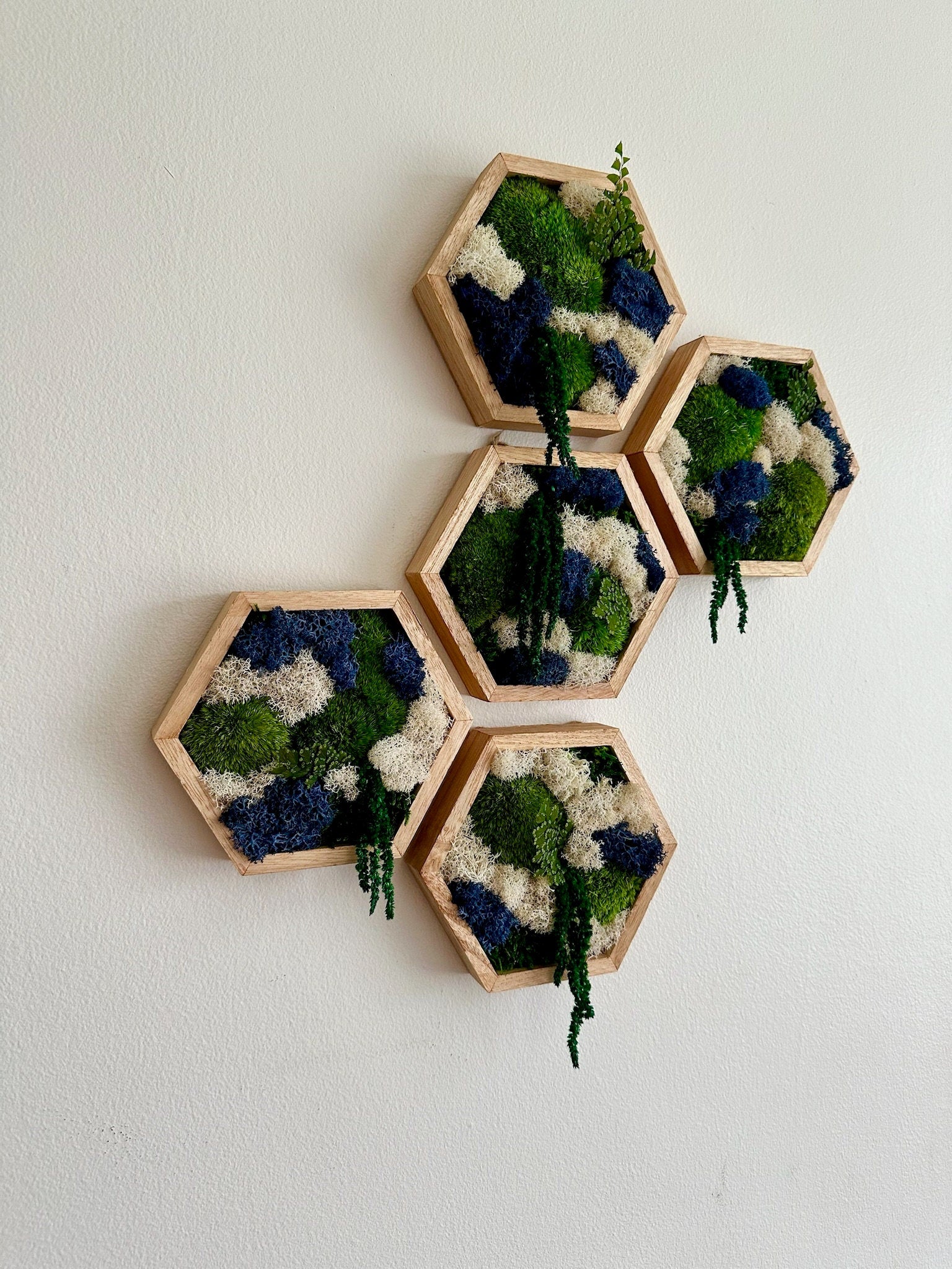 Honeycomb Moss Wall Art: Reindeer & Pole Moss in Wood Hexagon | USA - TARIFF FREE