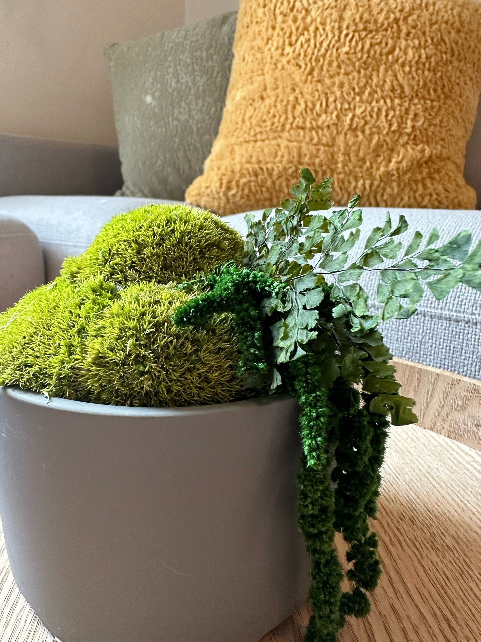 Moss Bowl Centrepiece | Moss | Preserved Moss Gift | Concrete Moss Bowl | Green Pole Moss | Preserved Fern | Wedding Gift |