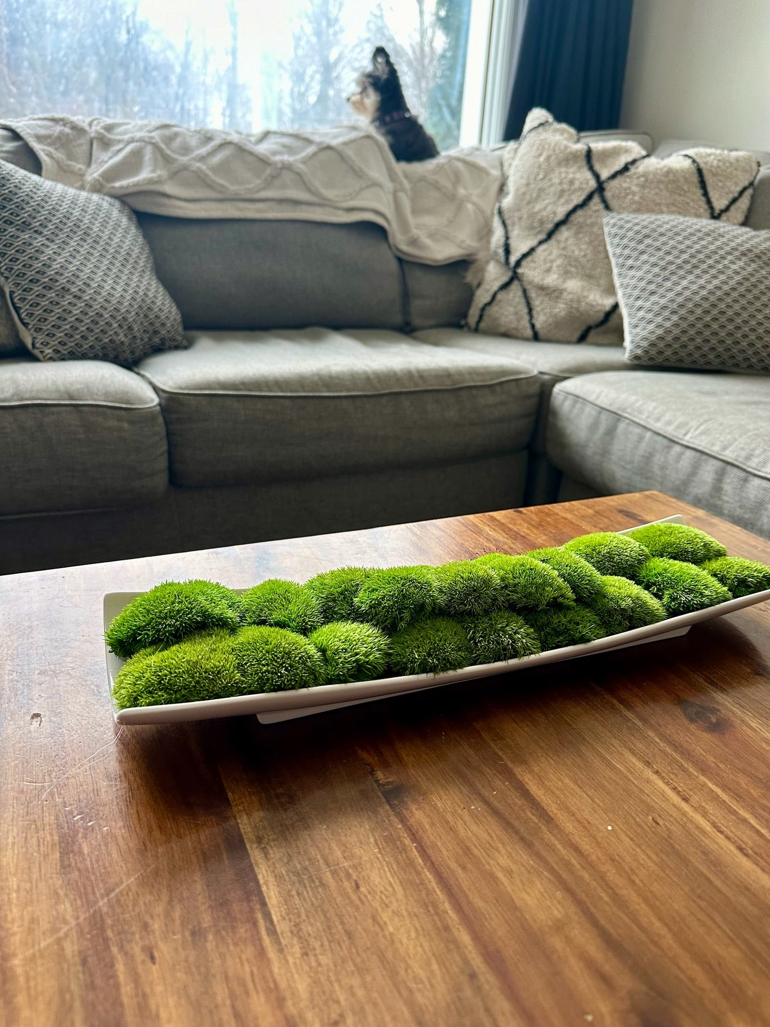Bring a vibrant piece of nature into your home, creating a beautiful fresh atmosphere with preserved mood moss but without the maintenance or worry of trying to keep your house plants alive! The colours will stay vibrant and rich for 10+ years