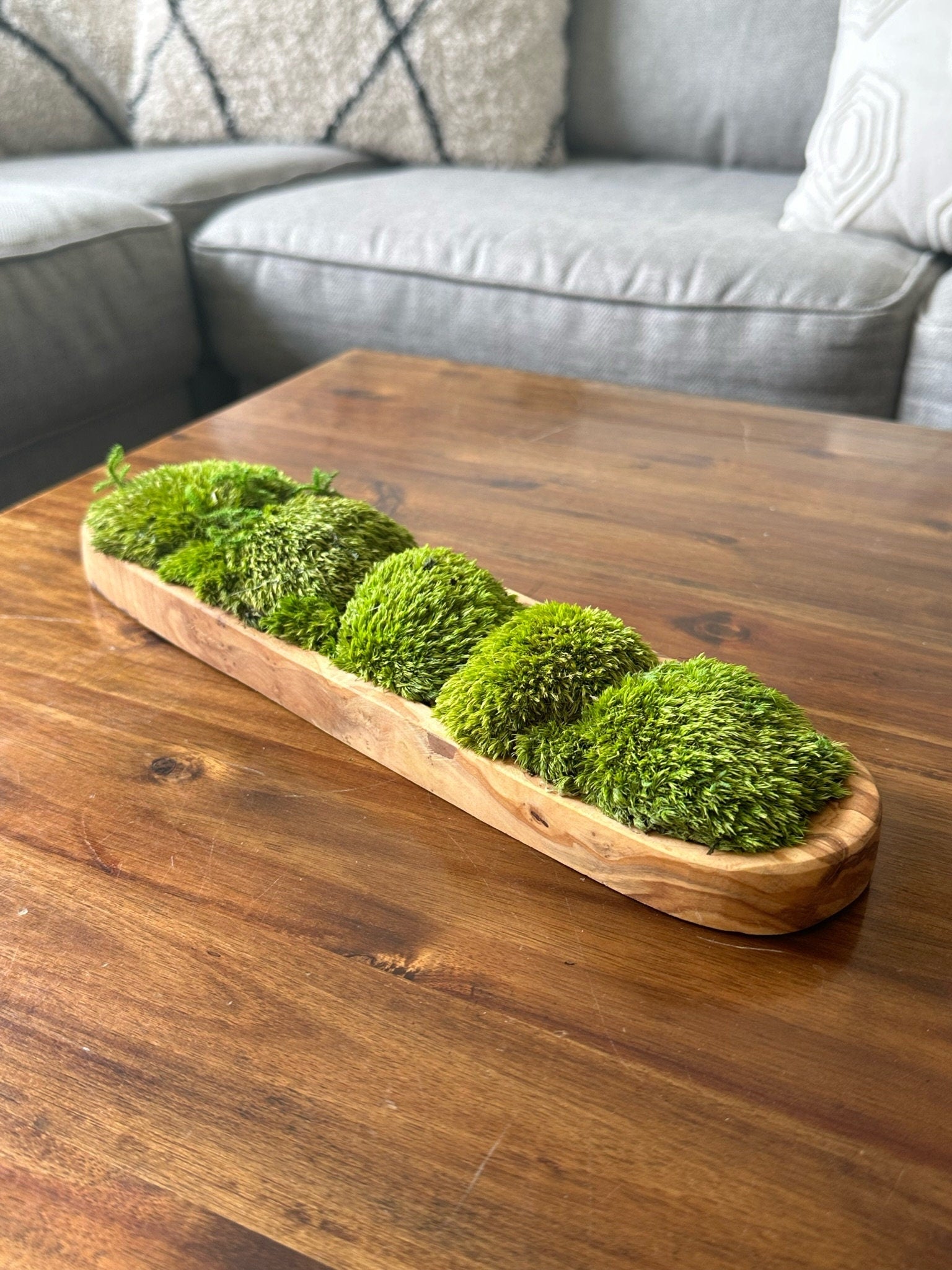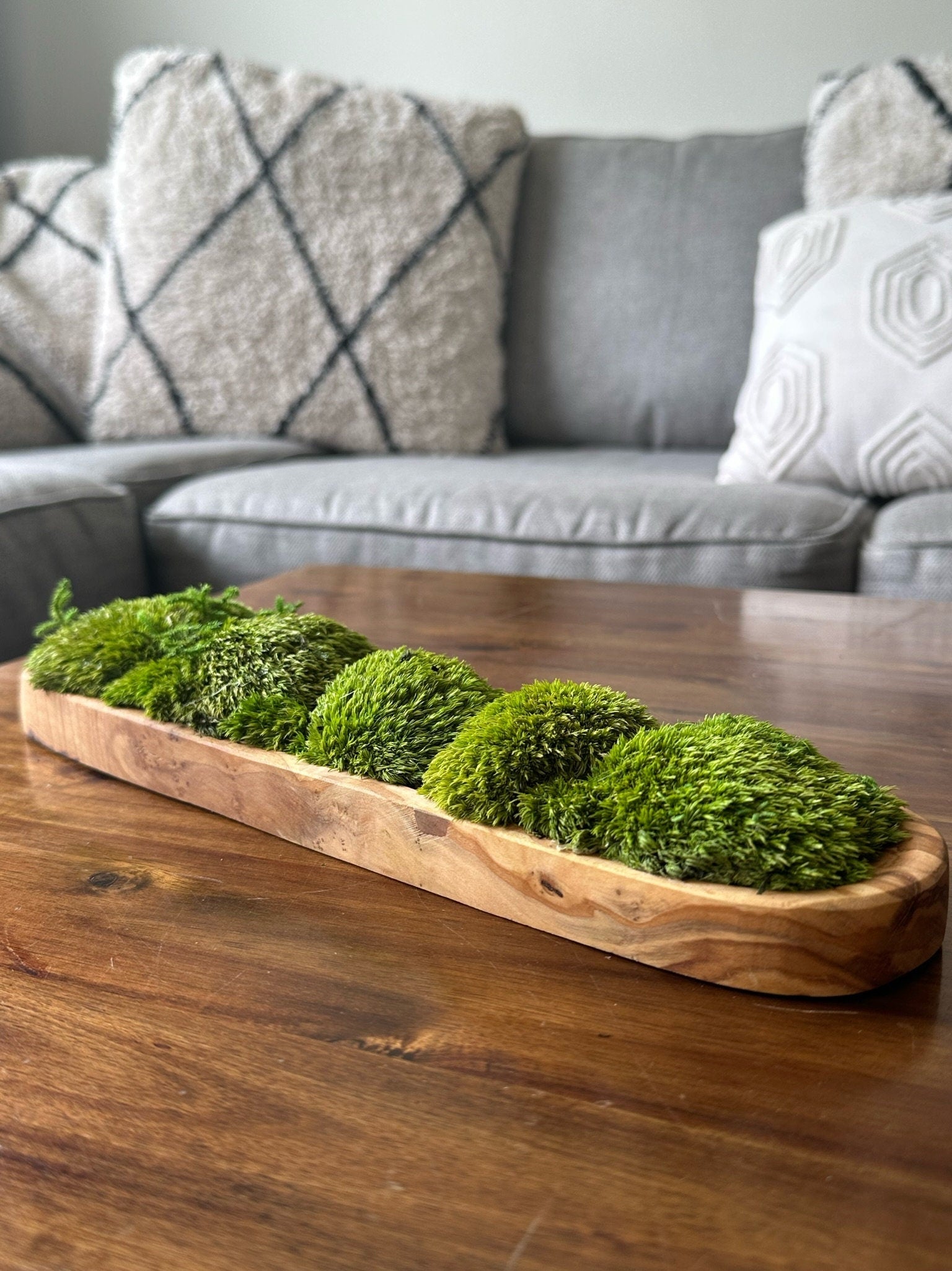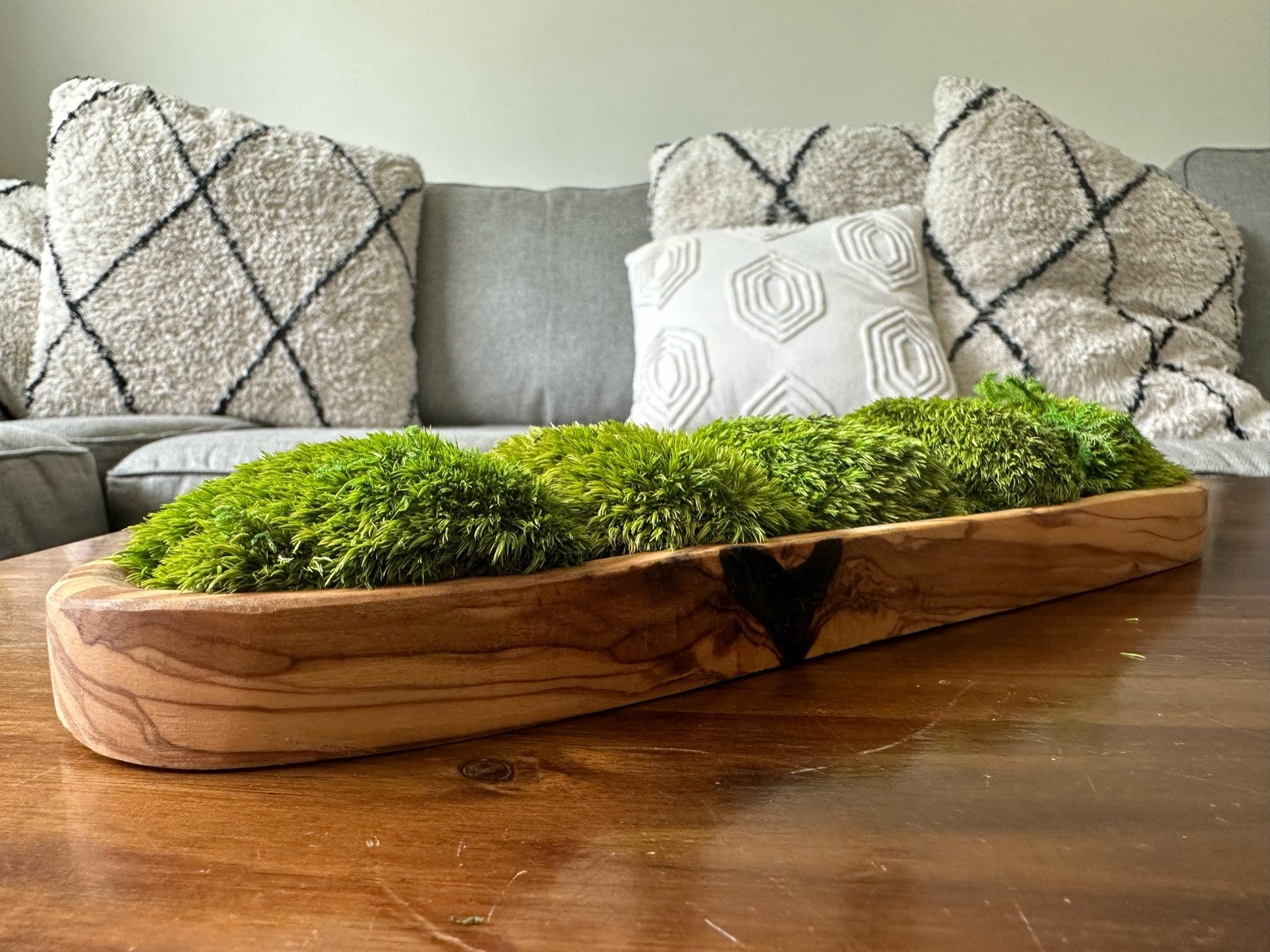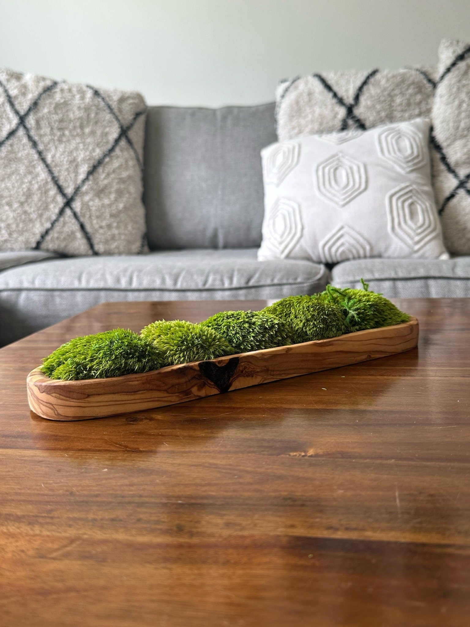 Moss Centerpiece | Pole Moss | Moss Planter | Preserved Moss Gift | Olive Wood Nature Bowl | One of a Kind | Green Pole Moss | Gift