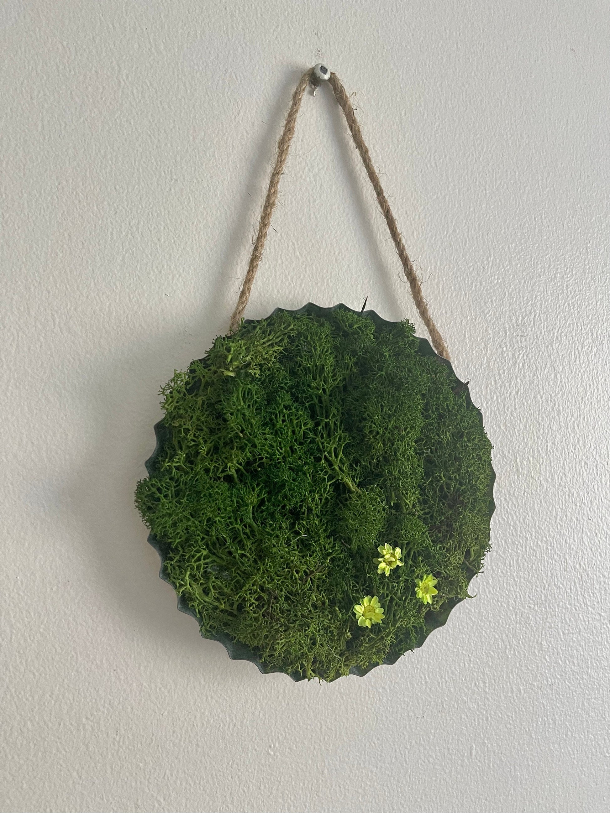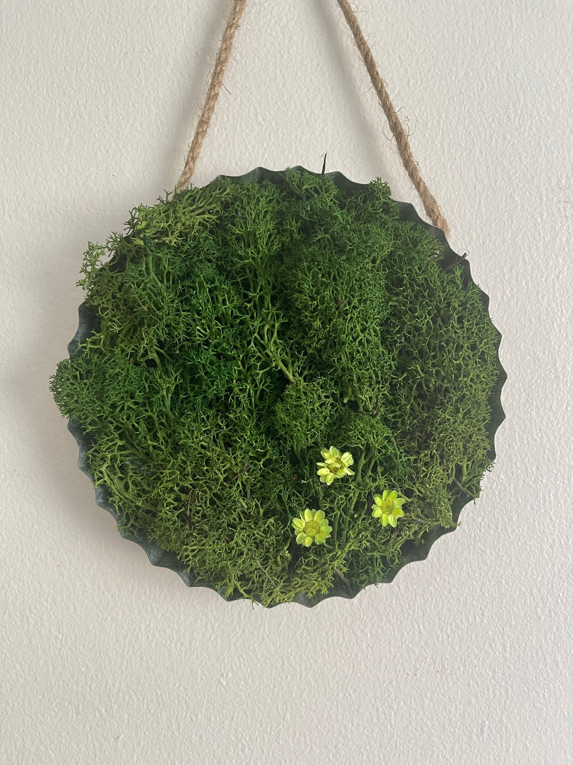 All of our Moss Art Pieces are made with Grade A Preserved Reindeer Moss (Lichen). It is made from 100% real natural mosses (lichen) and/or flowers that require no watering, no natural direct sunlight and no trimming.