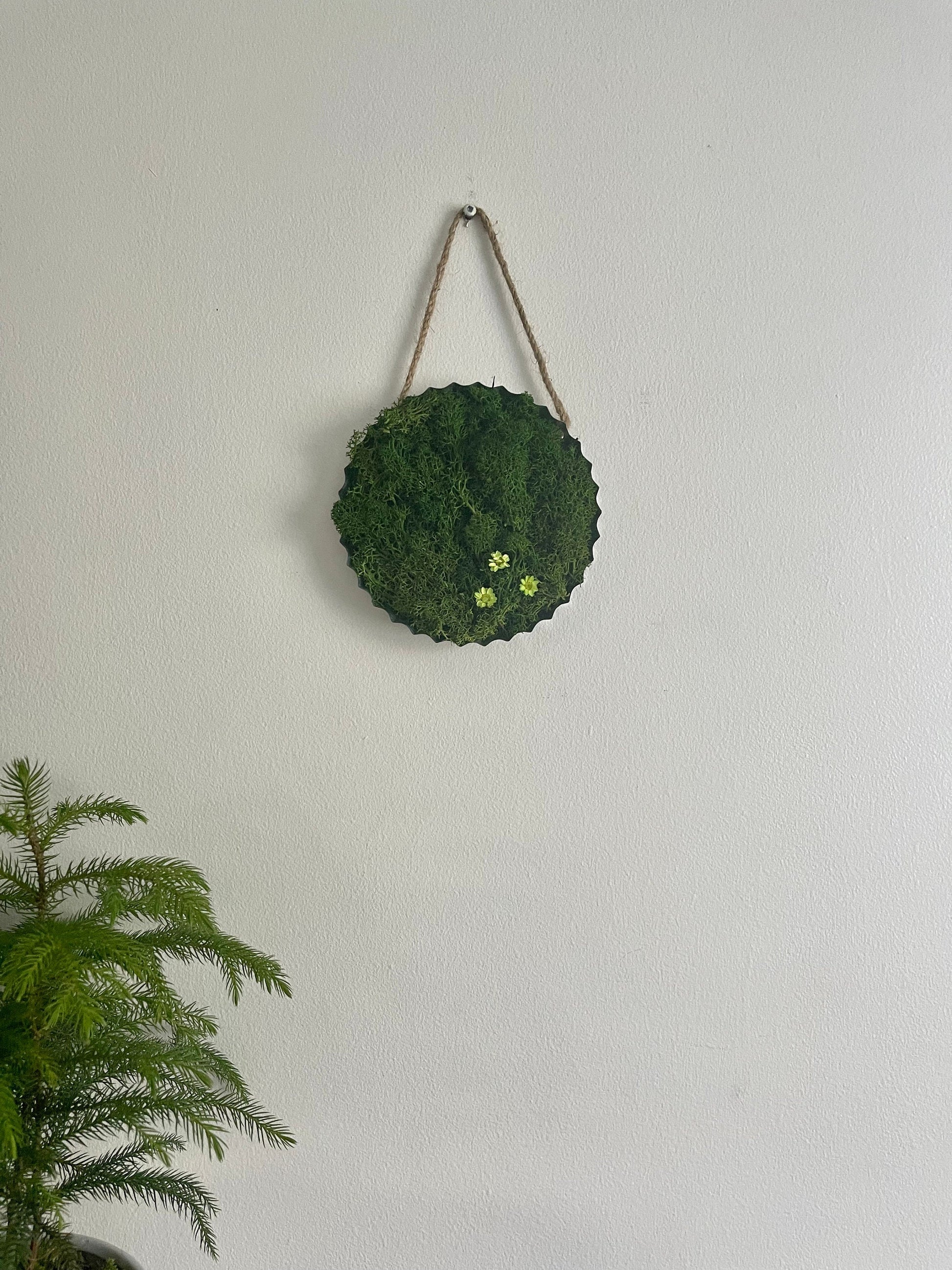 Moss Wall Art | Home Deco | Round Metal Moss Frame | Green with Preserved Flowers