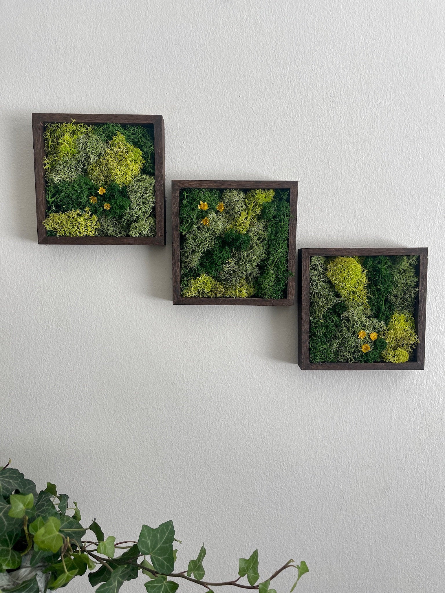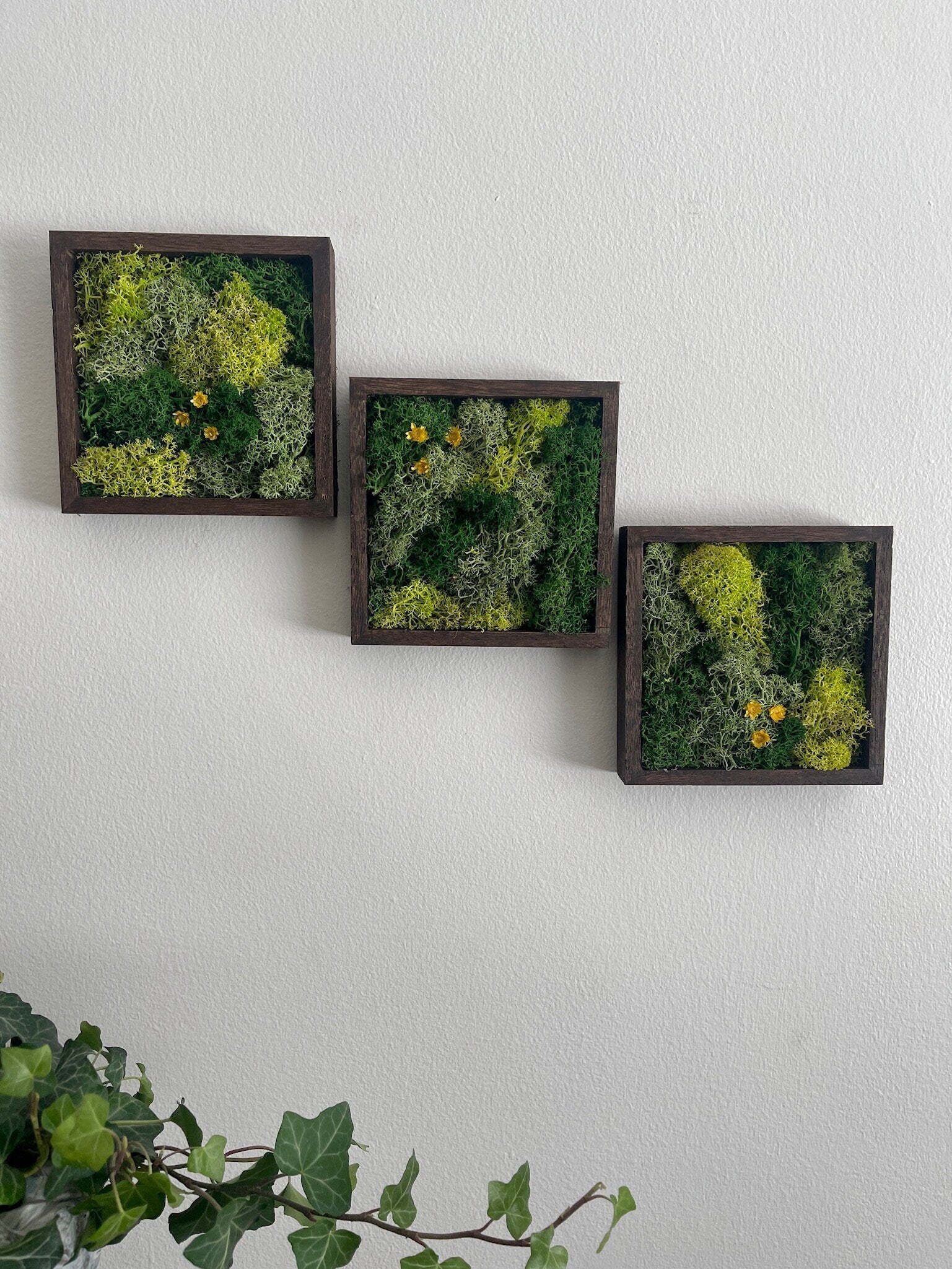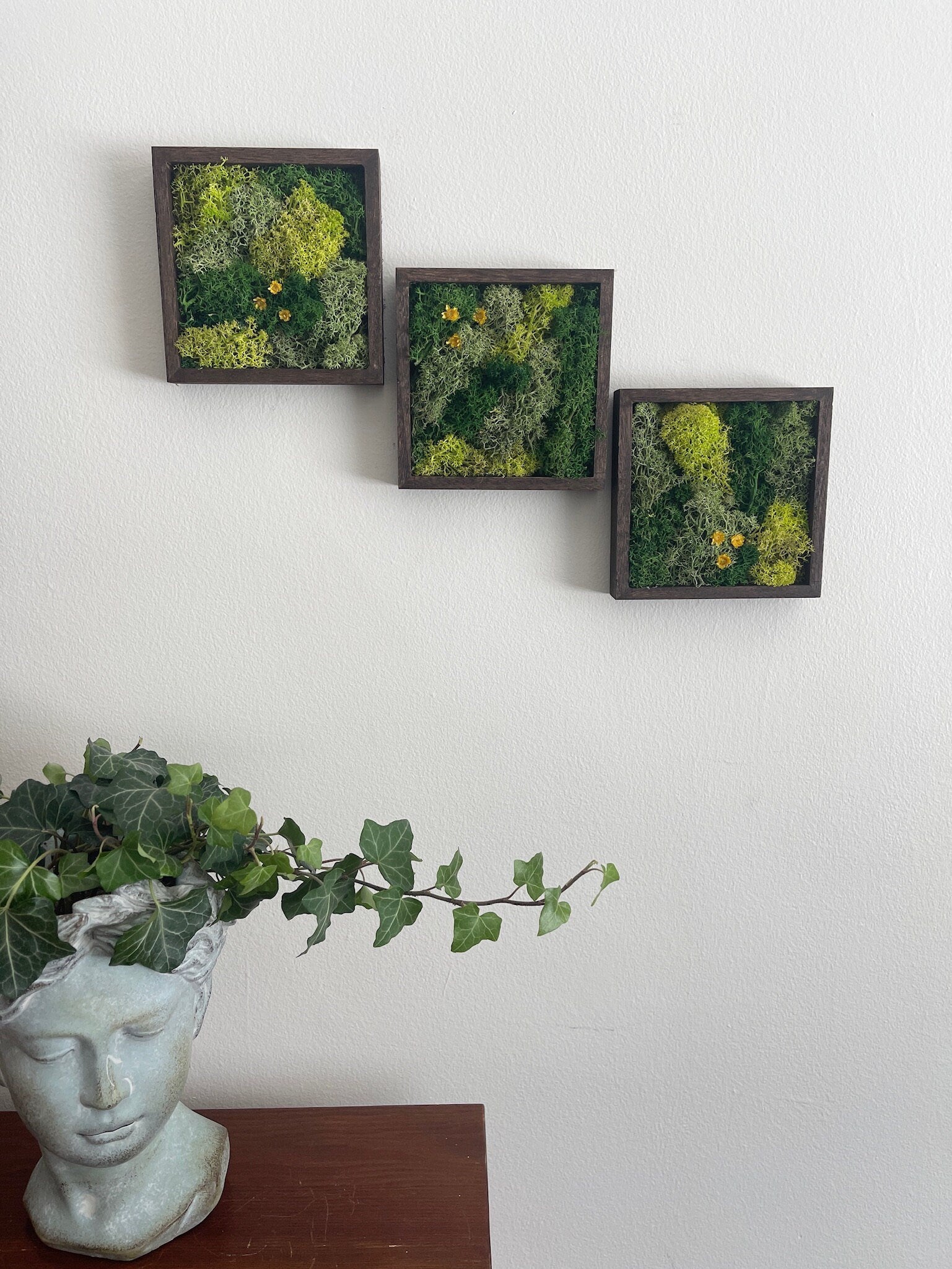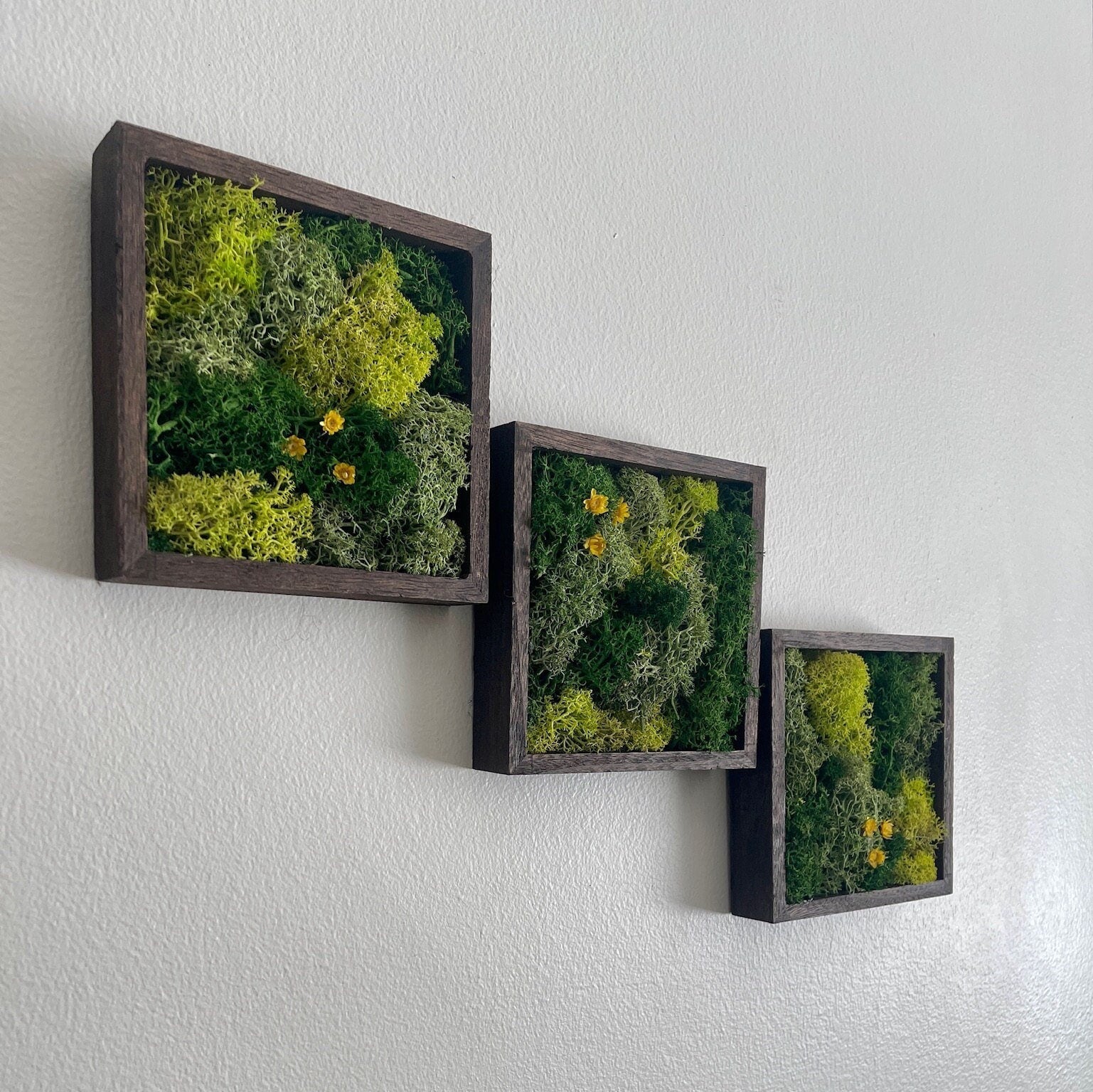 Moss Wall Art | Moss Decor | Single to Set of Six | Wood Square Frame | Preserved Moss | Live Moss | Green with Preserved Flowers