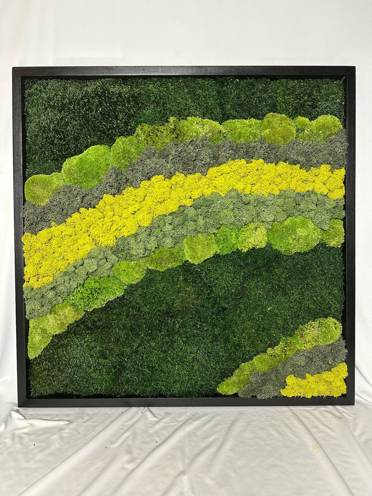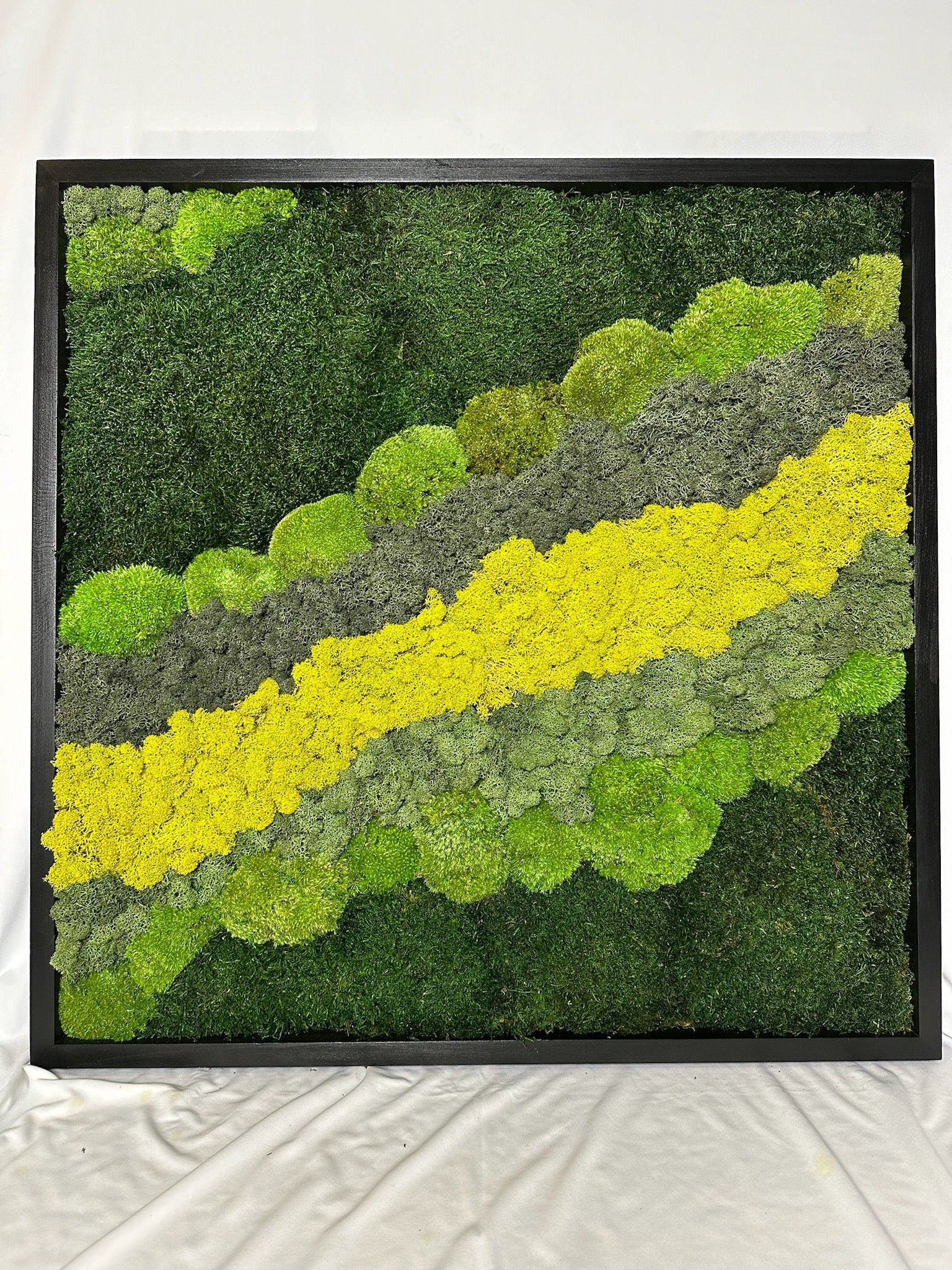 All of our Moss Art Pieces are made with Grade A Preserved Reindeer Moss (Lichen). It is made from 100% real natural mosses (lichen) and/or flowers that require no watering, no natural direct sunlight and no trimming.