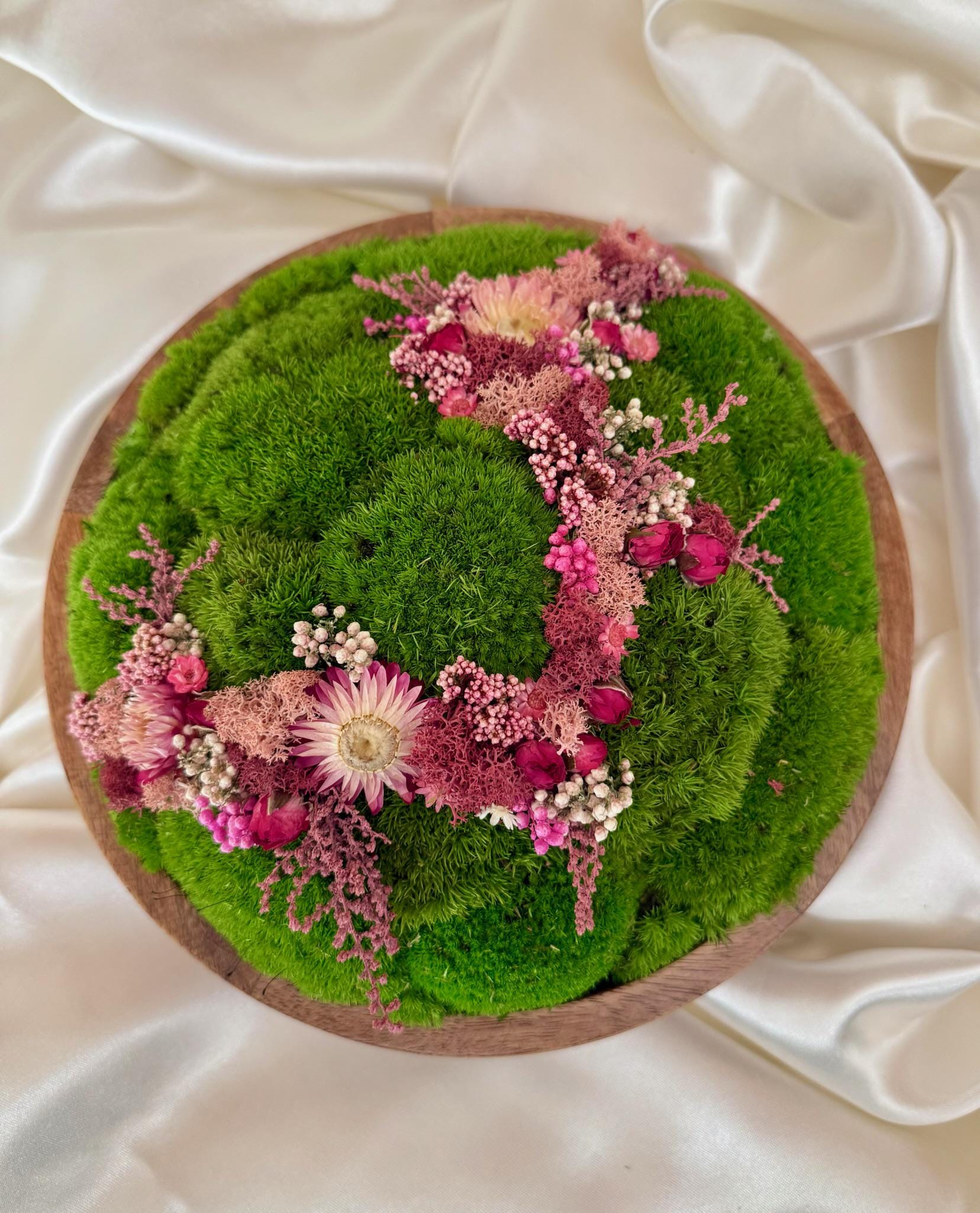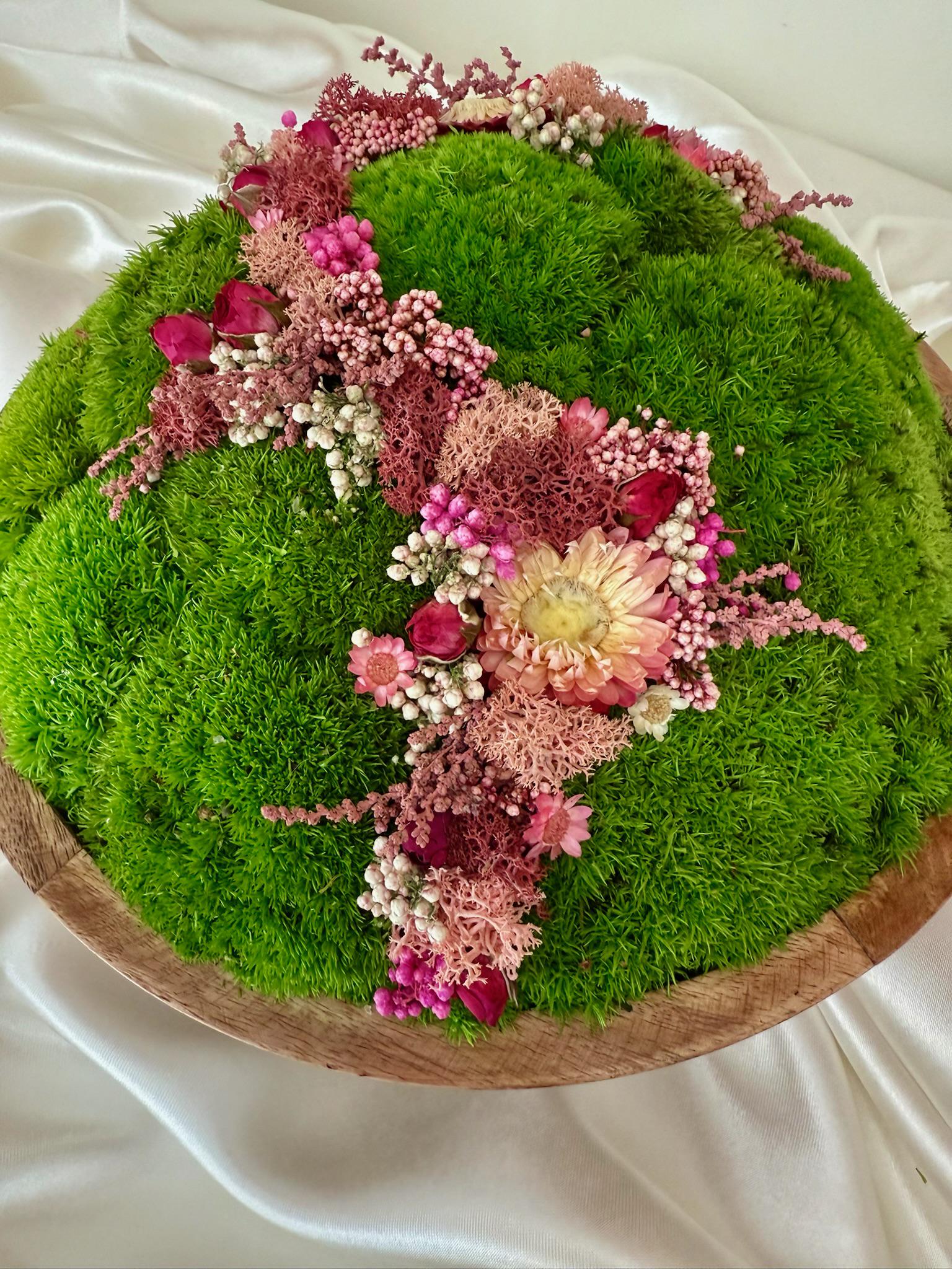Preserved Moss Circle Centrepiece: Wood Bowl with Reindeer Moss | USA - TARIFF FREE