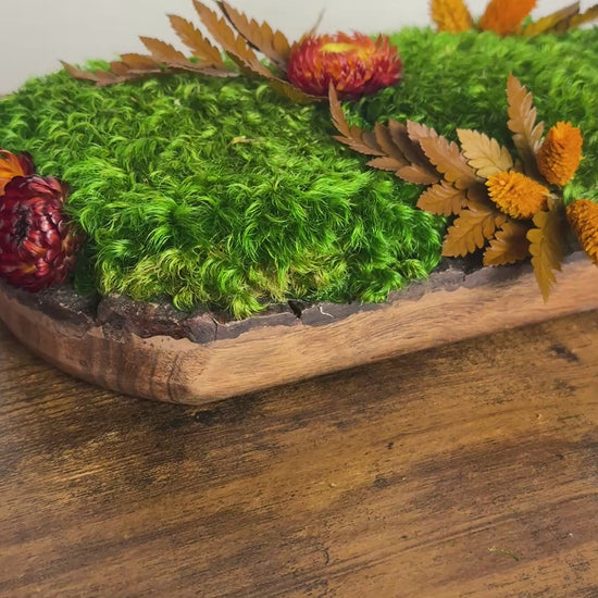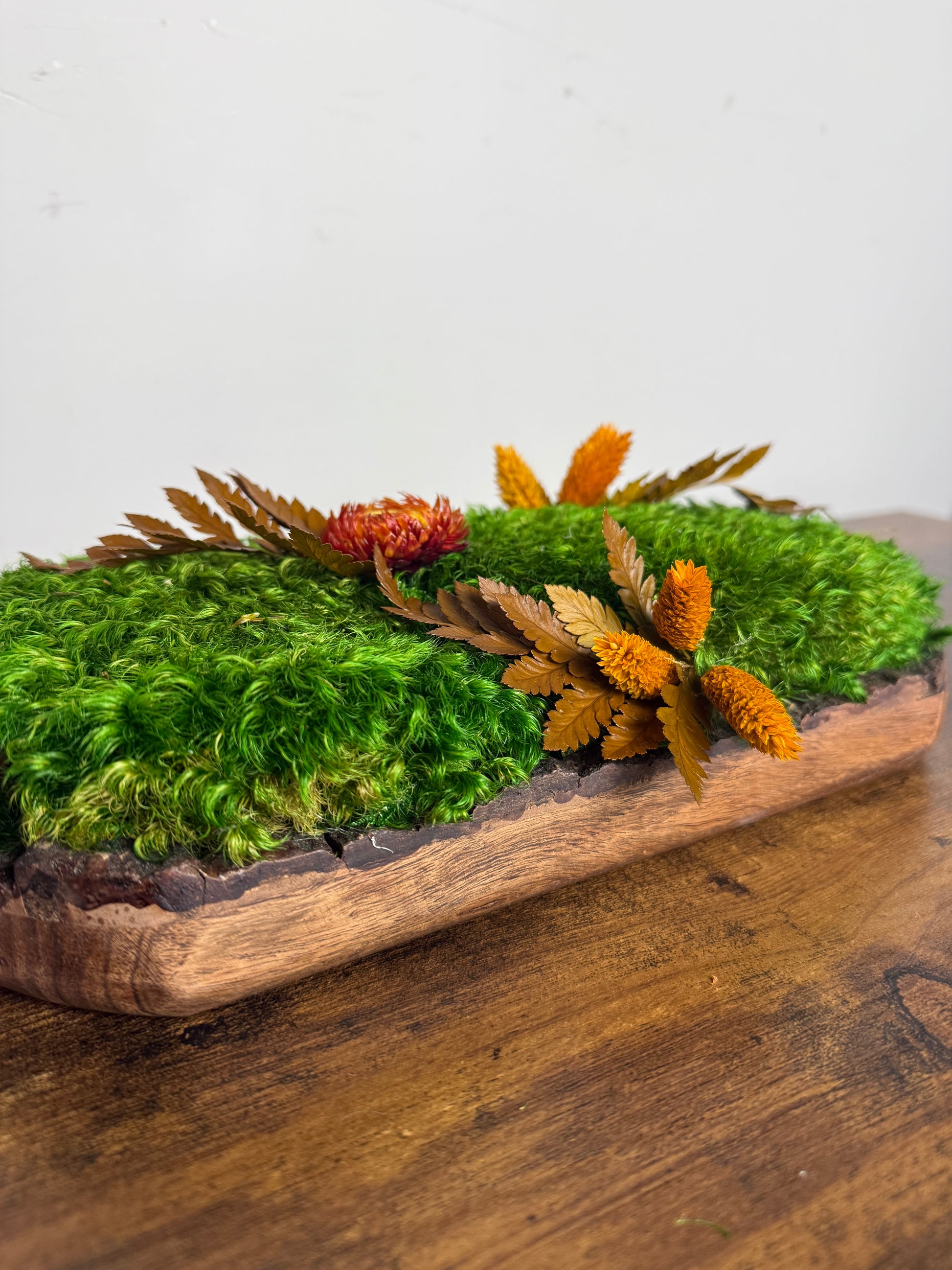 Preserved Pole Moss Centerpiece: Wood Nature Bowl, Wedding Decor with Orange Flowers | USA - TARIFF FREE