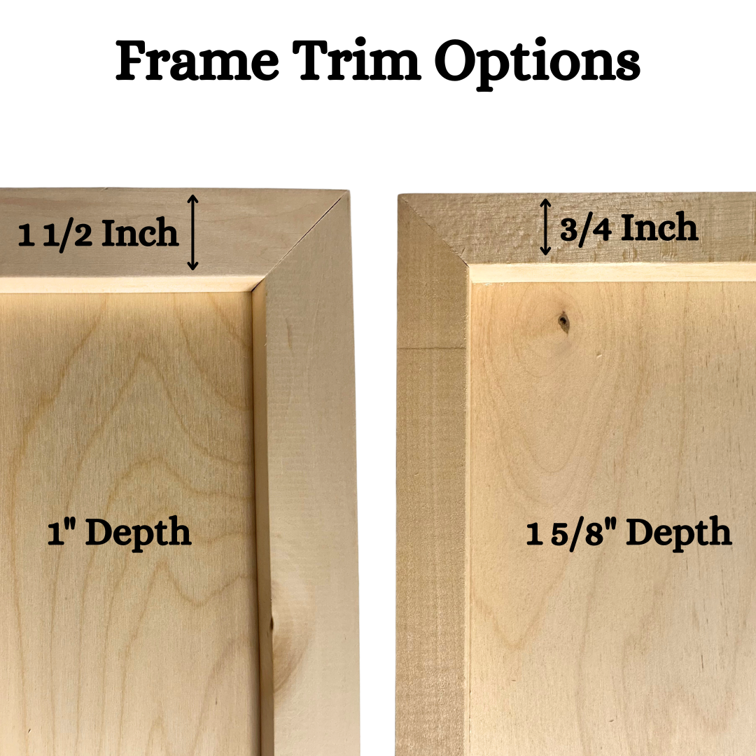 **Please note dimensions and measurements carefully, both frames are 24 by 8 inches but depth from the wall and trim size varies between options**