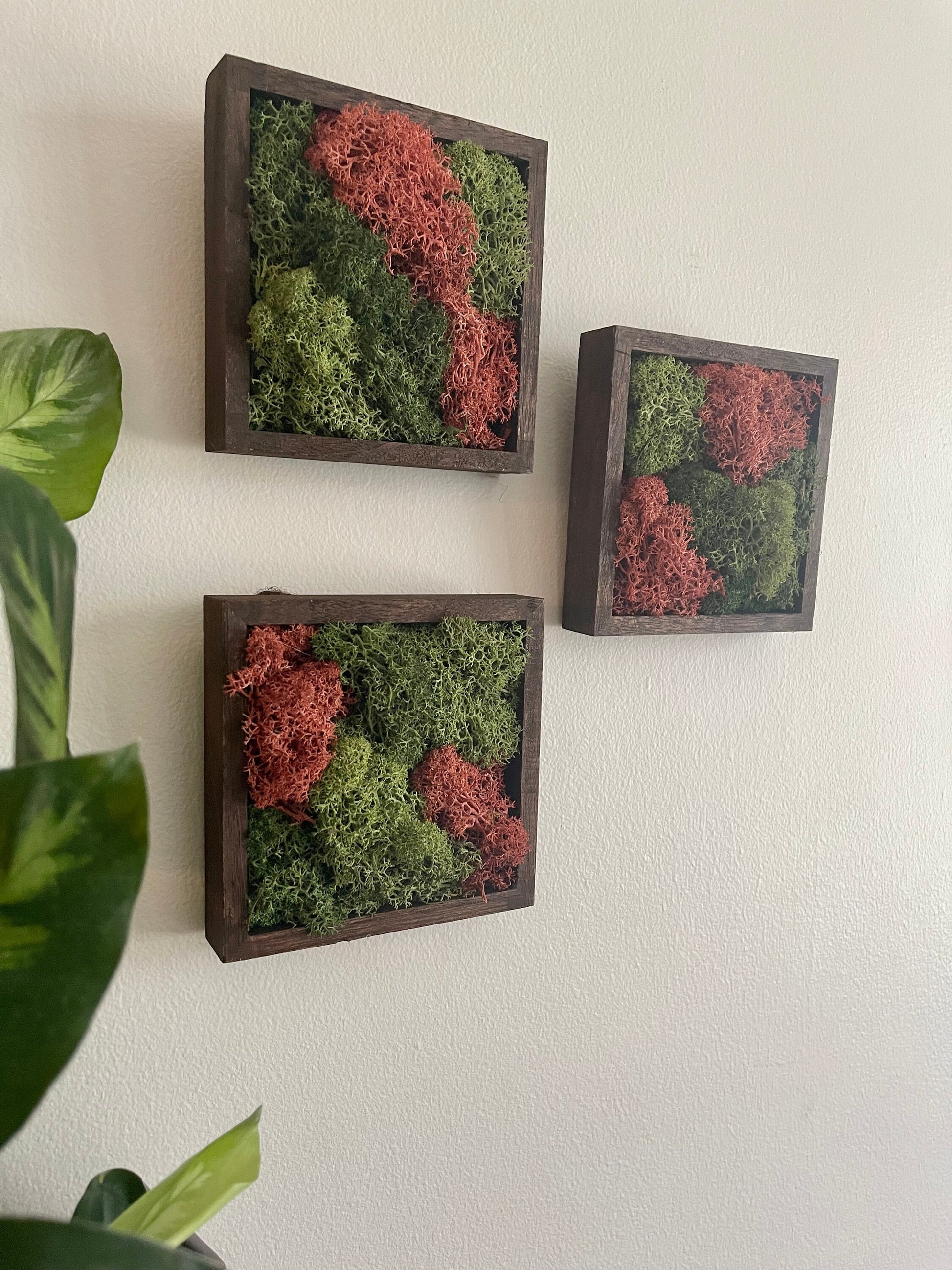 Preserved Reindeer Moss Wall Art: Green & Pink Square Trio | USA - TARIFF FREE
