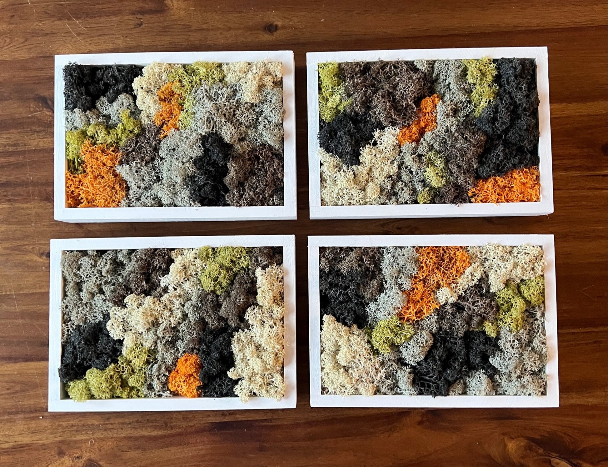 All of our Moss Art Pieces are made with Grade A Preserved Reindeer Moss (Lichen). It is made from 100% real natural mosses (lichen) and/or flowers that require no watering, no natural direct sunlight and no trimming.