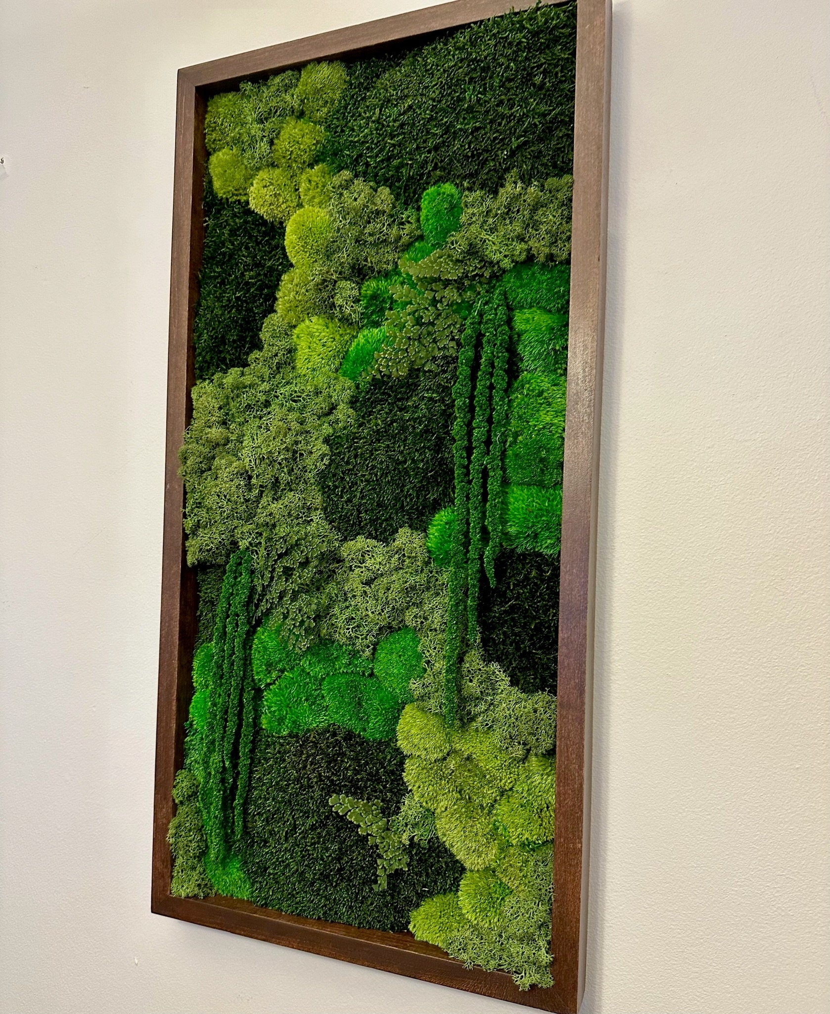 Preserved Reindeer Moss Wall Art: Wood Frame, Greenery Decor (15" x 30")