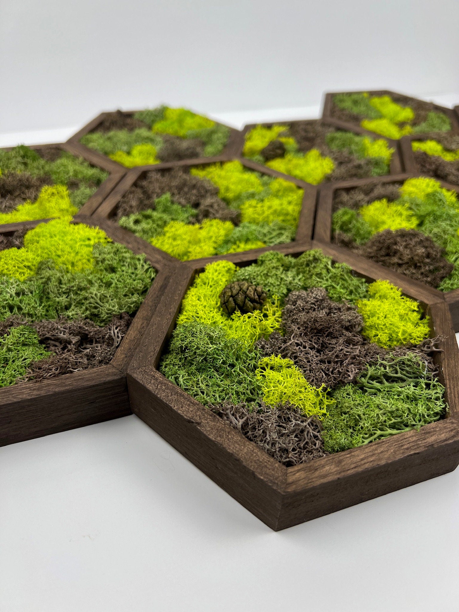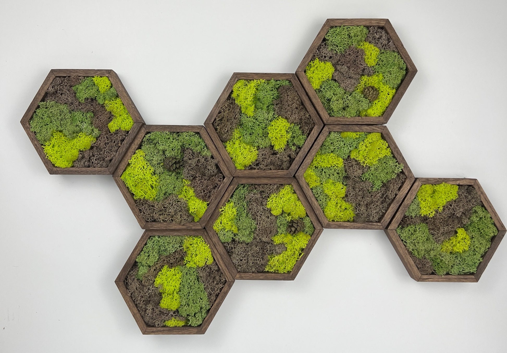 Preserved Reindeer Moss Wall Art: Wood Hexagon Set | USA - TARIFF FREE