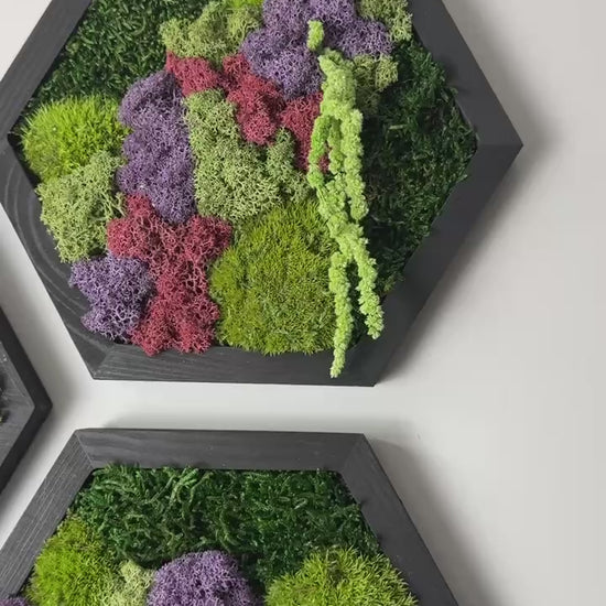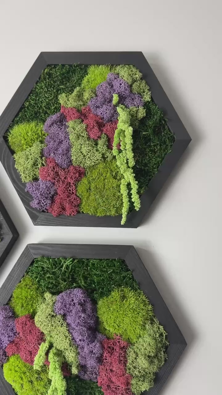 Reindeer Moss Wall Art: Hexagon Wood Frame, Preserved Nature Decor | USA - TARIFF FREE (Copy)